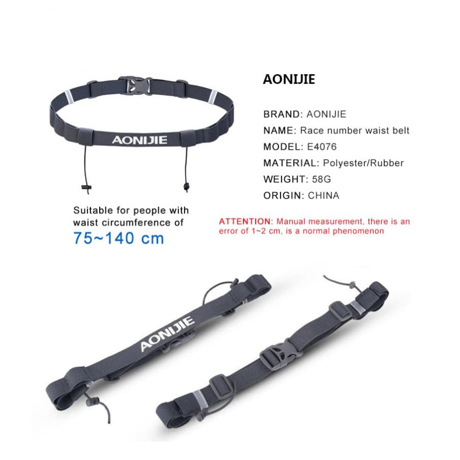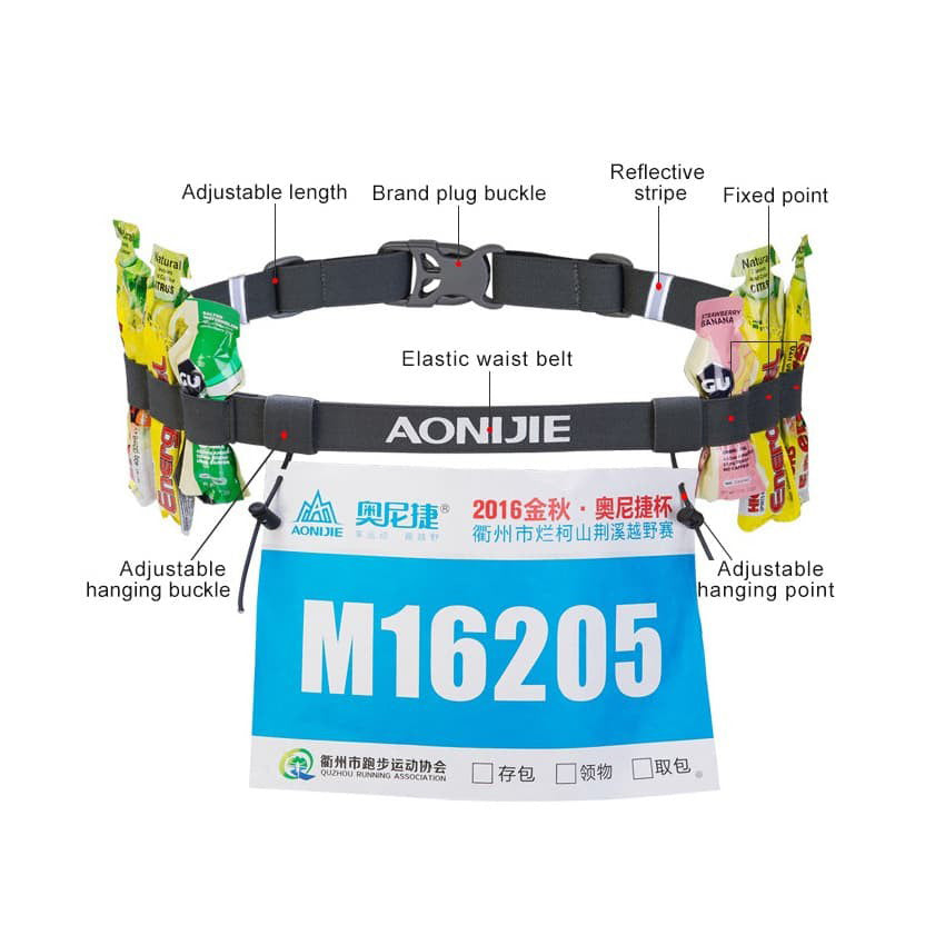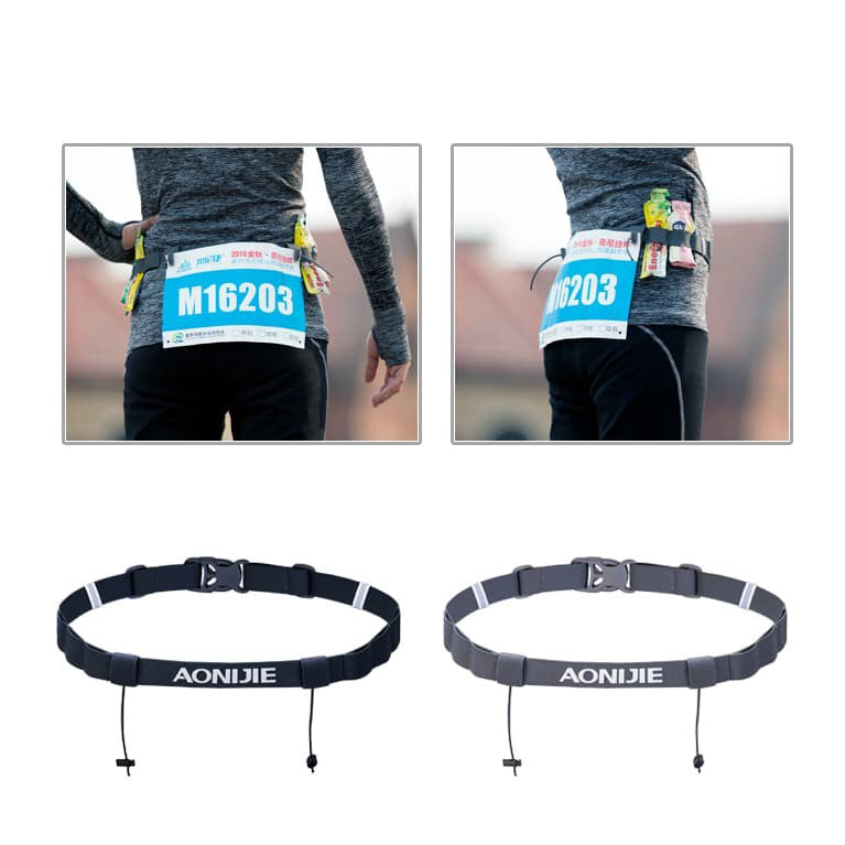 Tali BIB / Race Number Belt AONIJIE terdapat Reflective dan 6 gel holder
