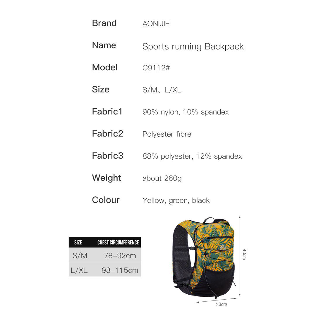 Tas Ransel hidrasi Aonijie C9112 memiliki kapasitas 12 L :