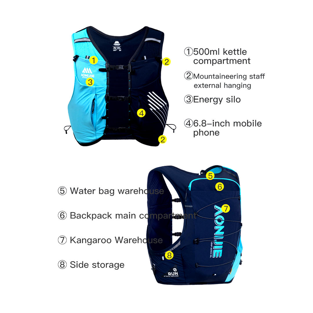 Aonijie C9116 Hydration Backpack Vest - 10 Liter Trail Running Sports - NAVY