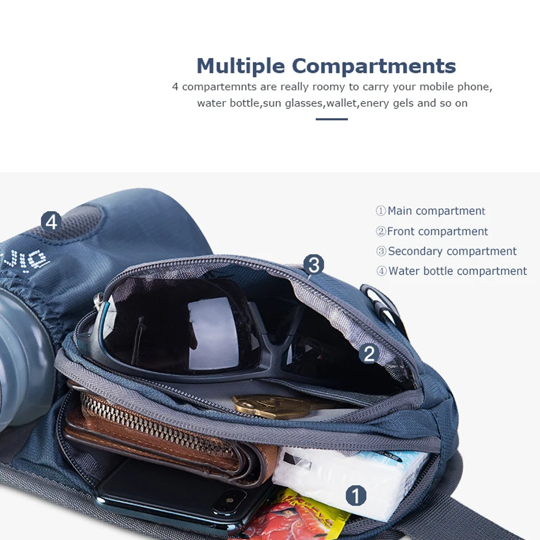 - Stable water bottle holder: (bottle not included) There is an elastic strap on the mouth of the water bottle holder, which efficiently keeps your bottle stable and safe when running or jogging