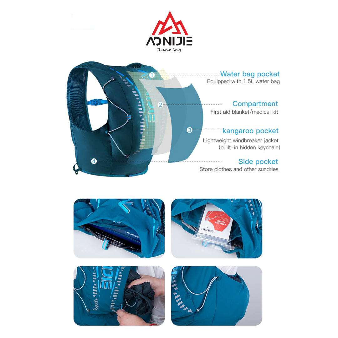 Aonijie Hydration Backpack Vest C962S - 12L Trail Running - NAVY BLUE