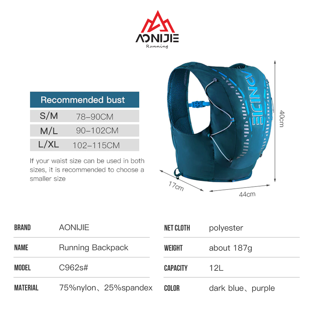 Aonijie Hydration Backpack Vest C962S - 12L Trail Running - PURPLE